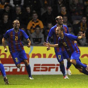 Despite Levante's superiority, they had not cut open the Motherwell defence until the hosts shot themselves in the foot when Levante right-back Christian Lell played a high diagonal ball. Theofanis Gekas looked offside but the ball sailed beyond him and left-winger Juanlu ran from an onside position behind Tom Hateley to collect the ball before scoring